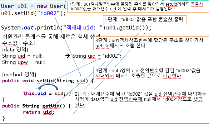 //uid 필드에 셋팅하기 위한 메서드 선언(private이기 때문에 AA01.java 에서 접근 불가능)